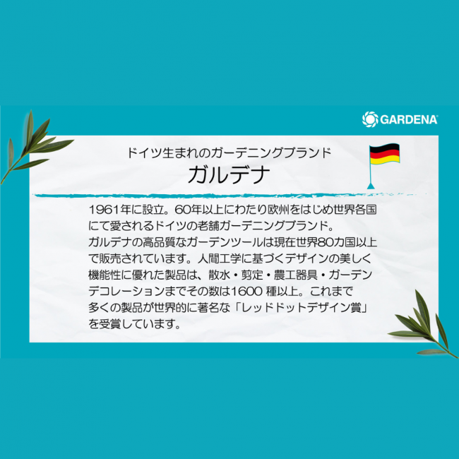 GARDENA(¥¬¥ë¥Ç¥Ê)¤Ï¡¢Äí¤Î¤ª¼êÆþ¤ìÍÑÉʤò¡Ø¾ðǮŪ¤Ë¥¬¡¼¥Ç¥Ë¥ó¥°¤ò³Ú¤·¤à¡Ù¤ªµÒÍͤ«¤é¿®Íê¤òÆÀ¤Æ60ǯ°Ê¾å¤Ë¤ï¤¿¤êÀ¤³¦82¥õ¹ñ°Ê¾å¤ÇÈÎÇ䤷¤Æ¤¤¤ë¡¢¥É¥¤¥Ä¡¦¥¦¥ë¥àȯ¾Í¤Î¥¬¡¼¥Ç¥Ë¥ó¥°¥Ö¥é¥ó¥É¤Ç¤¹¡£